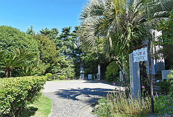 この写真は、拝観料を払って、大浦天主堂へ続く階段道の途中から撮影しています。