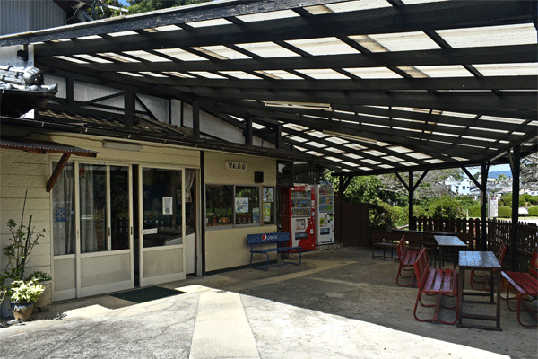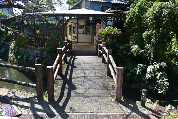 眼鏡橋から高城神社の方向へ行くと、小野用水に架けられた小さな橋があり、その橋を渡ると売店と自動販売機がある休憩所へ行くことができます。