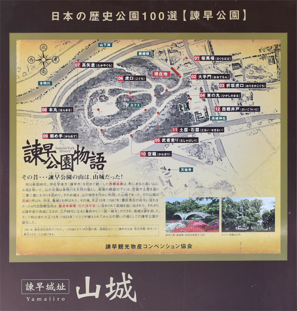 諫早城本丸跡に整備された諫早公園は、別名(上山公園)とも言われ、2006年(平成18年)に「日本歴史公園100選」に選定されました。