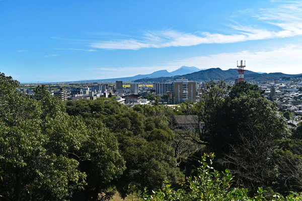 大クスの隣には、藤棚がある展望所があり、諫早市街地や雲仙普賢岳を一望できます。